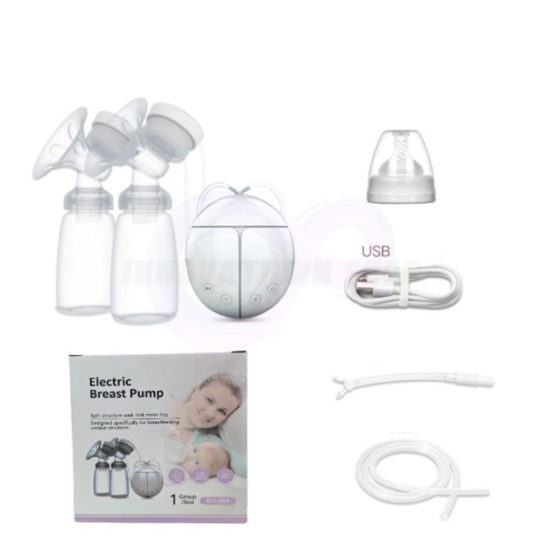 - 2 copas de extracción anatómicas, 2 mangueras flexibles, 1 control de bomba electrico, 2 recipientes, 1 cable USB